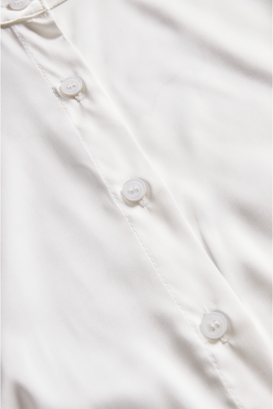 Sophisticated White Satin Blouse with Modern Keyhole Neckline