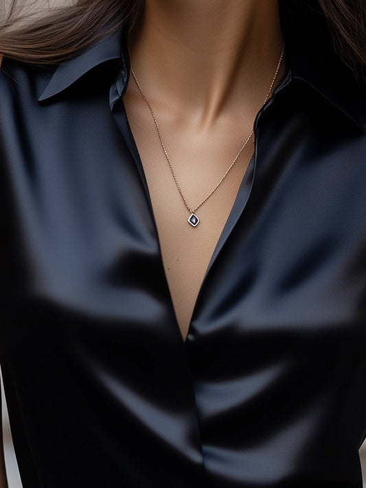 Asymmetric Satin Wrap Blouse with Gold Button