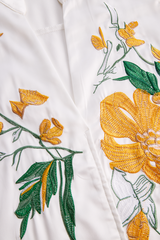 Asymmetric Buttoned Satin Blouse with Cutout Collar Detail