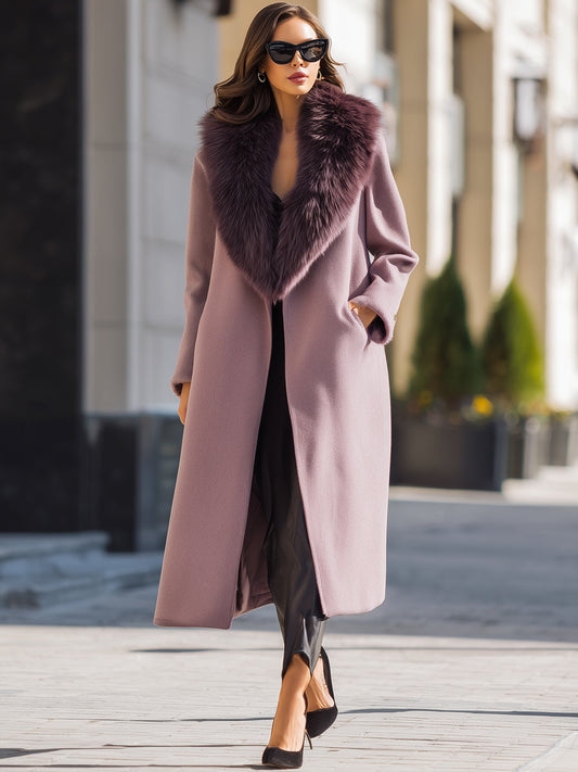 Mauve Wool Coat With Oversized Faux Fur Collar