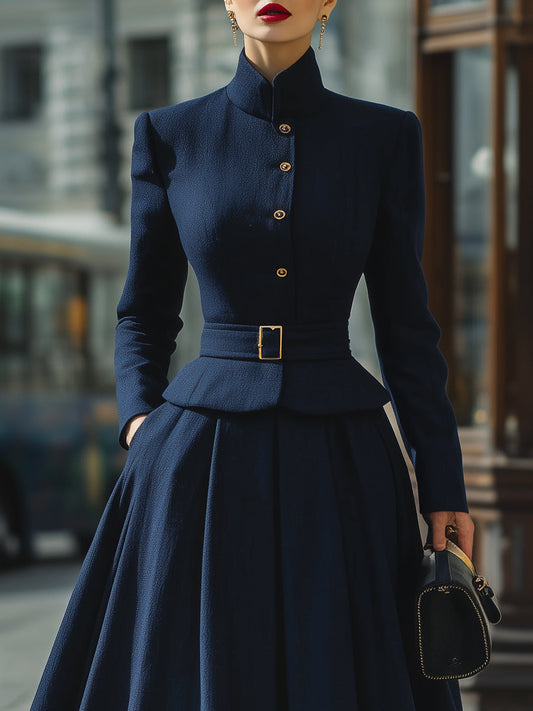 Quilted Belted Coat And Skirt Ensemble In Ivory