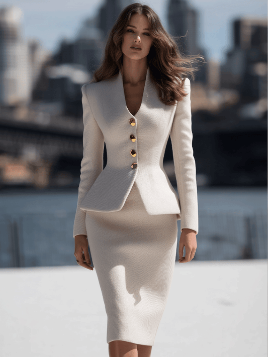 Elegant Ivory Structured Peplum Blazer Skirt Set
