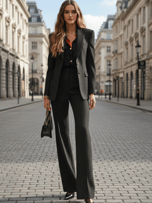 Tailored Fitted Blazer Pantsuit With Gold Buttons