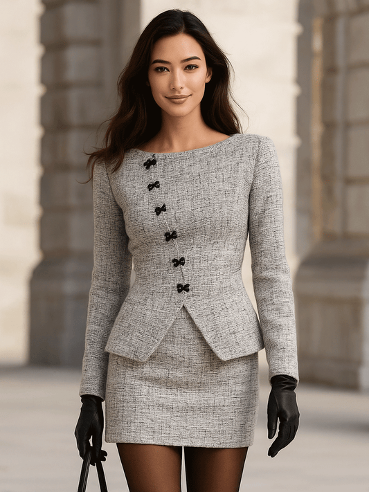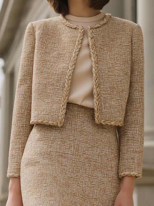 Braided Trim Woven Tweed Jacket And Skirt Set