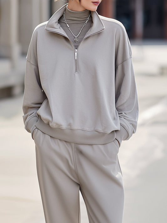 Relaxed Half-Zip Sweatshirt & Jogger Set