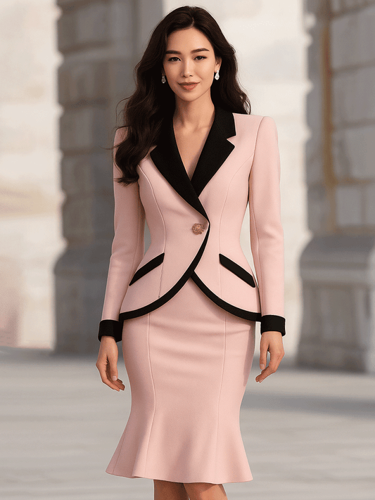Elegant Velvet Blazer Mini Set With Contrast Piping