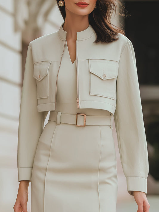 Chic Cream Cropped Hoodie And Wide-Leg Sweatpants Set