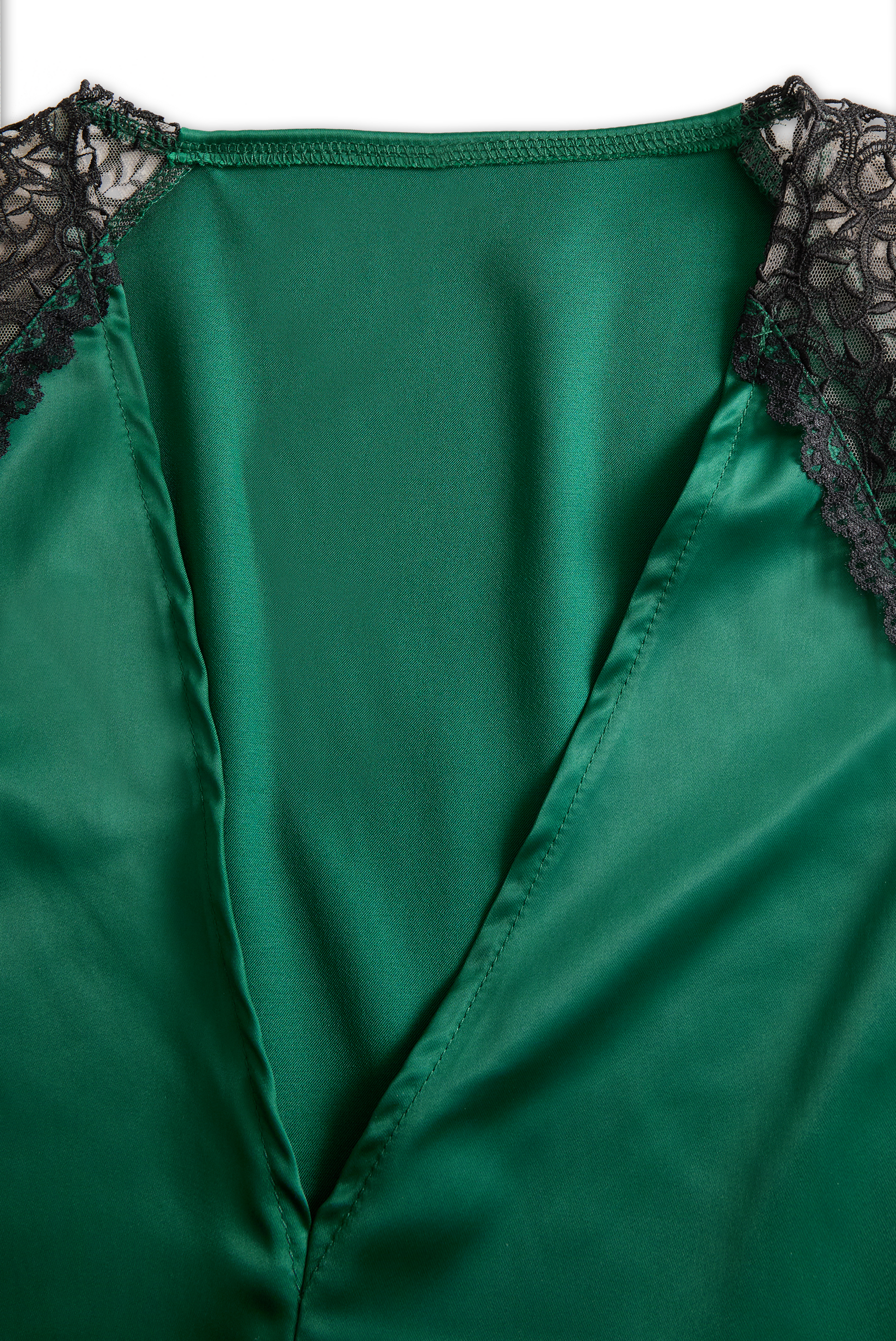 Deep V-Neck Satin Blouse with Lace Details - Emerald Allure
