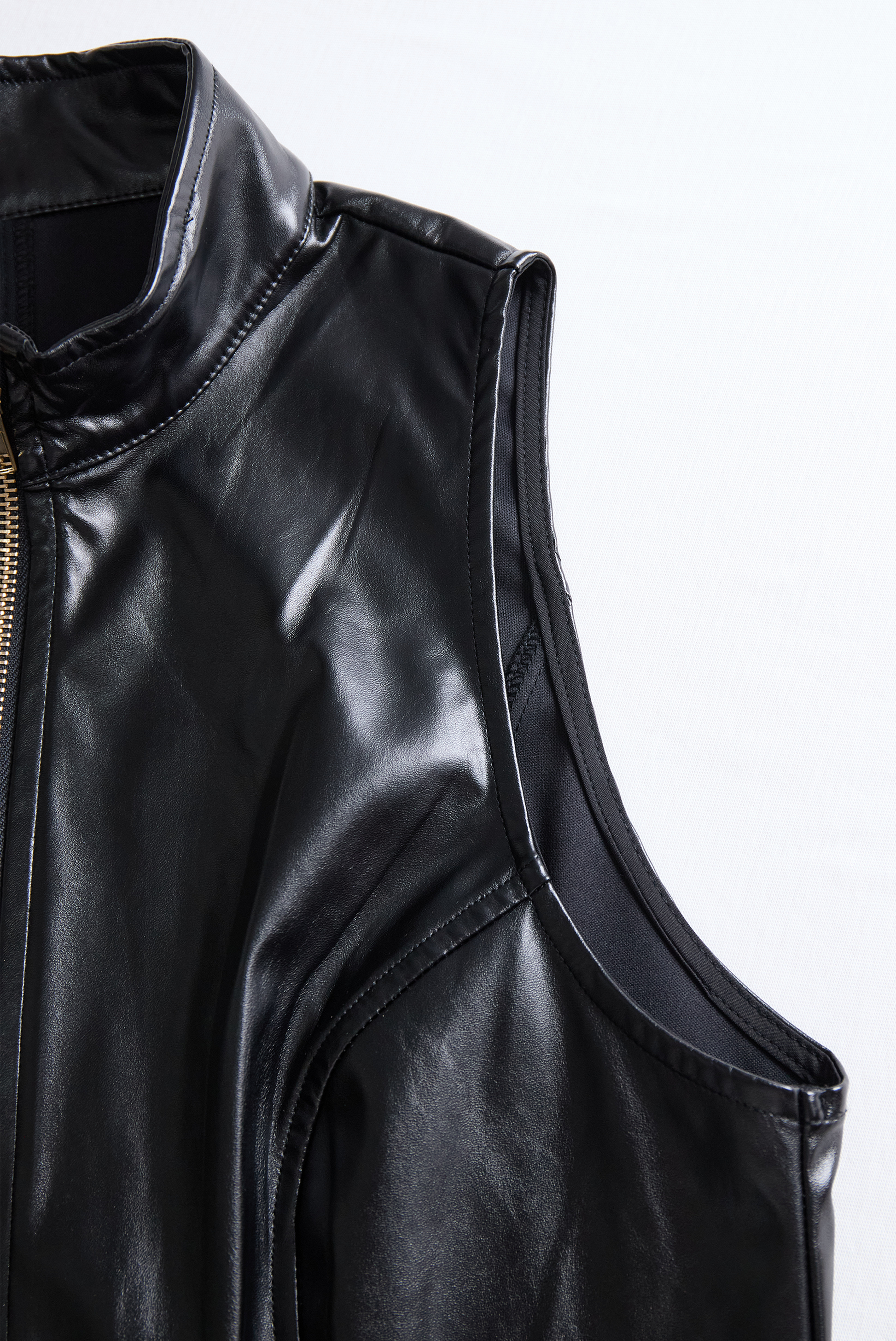 Edgy Black Zip-Front Faux Leather Dress