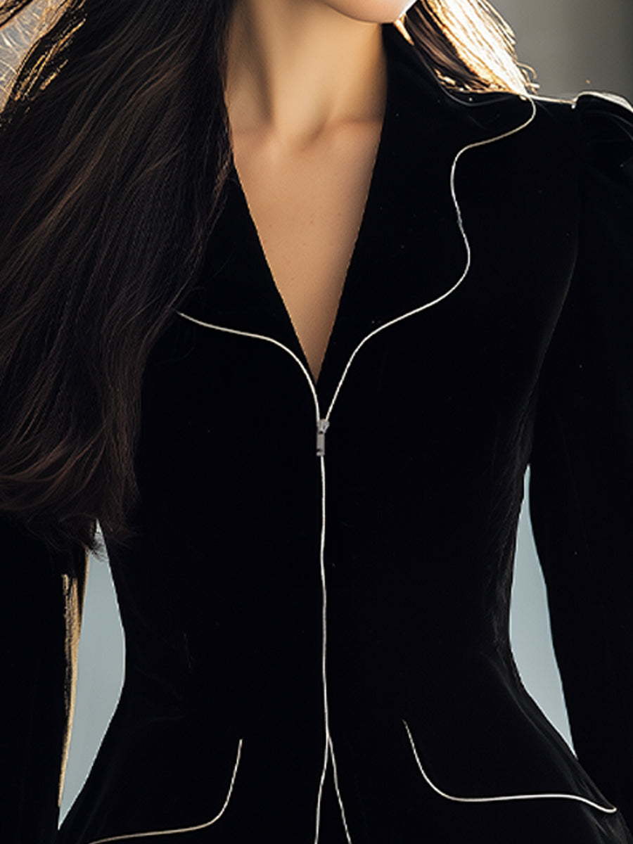 Elegant Velvet Blazer Mini Set With Contrast Piping