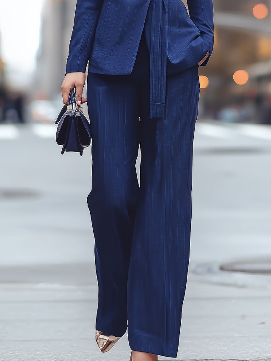 Perfect for making a polished statement, this set seamlessly combines professional elegance with contemporary style. The navy hue and pinstripe pattern exude timeless charm, while the belted blazer adds a touch of refinement. Pair it with metallic heels and a structured clutch, as shown, for a head - turning ensemble that transitions effortlessly from work to after - hours events.